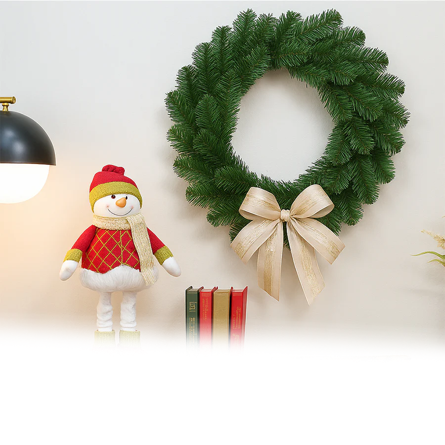 An exclusive handwoven garland featuring gold-dusted foliage, frosted berries, and velvet ribbon detailing — designed to make your home shimmer with understated luxury.